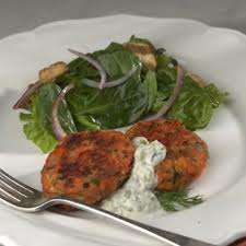 Ingredients: Salmon Cakes: (serves 4) 3 teaspoons extra virgin olive oil, divided 1 small onion, finely chopped 1 stalk celery, finely diced 2 tablespoons chopped fresh parsley 15 ounces canned…