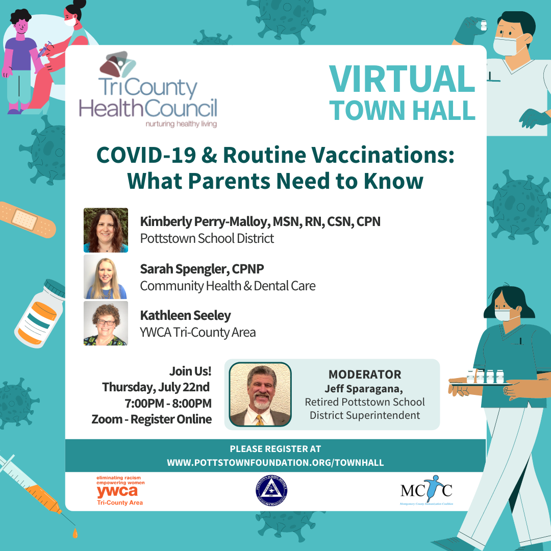 Special thanks to all our community partners who helped organize this town hall, including: The Montgomery County Immunization Coalition, YWCA Tri-County Area, and Pottstown School District.