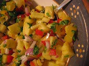 Ingredients: 2 cups diced fresh pineapple 1 cup diced cherry yellow and red tomatoes 3/4 cup chopped red onion 1/4 red bell pepper diced 1-2 hot peppers chopped 1/4 fresh…